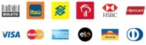 3- Escolha cartão de crédito, boleto bancário ou PIX. Para compras no boleto e no PIX clique no ícone de "Boleto" ou PIX que fica ao lado das bandeiras de cartões e em seguida clique no botão "COMPRAR AGORA". Você será direcionado para a página de geração de boleto ou código de pagamento PIX (Copia e Cola).